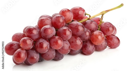 A hyper-realistic, ultra HD close-up of a luxury fruit, perfectly ripe Ruby Roman grape placed on a pure white background.