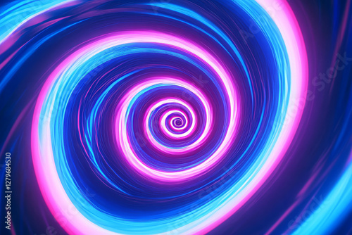 A hypnotic swirling pattern of electric blue and neon pink, forming an infinite vortex of light and movement.