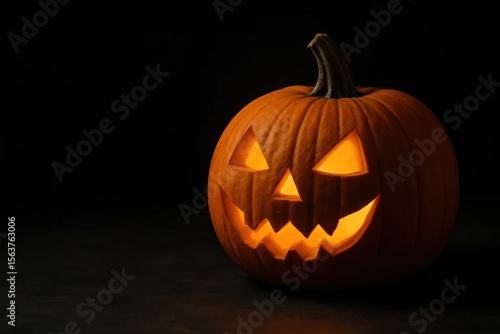 A jack-o-lantern is lit up in the dark