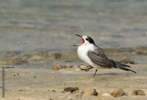 A juvenile White-cheeked Tern calling in hunger, Bahrain .