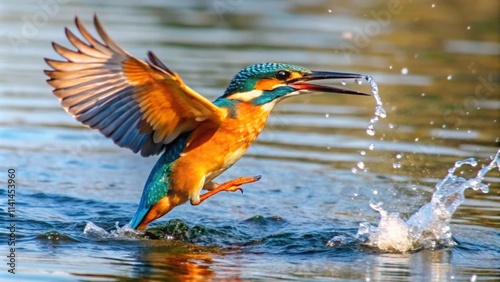 A Kingfisher Diving Into Water With Splashing Water Droplets