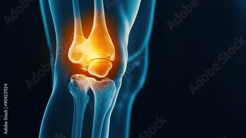 A knee with a red and yellow mark on it. The knee is in a cartoonish way