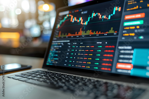 A laptop showing investment platforms and trading options available worldwide, investment diversification strategies and portfolio management