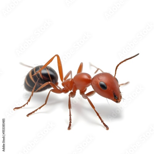 A large ant with black markings , close-up view showing its detailed anatomy and textured surface