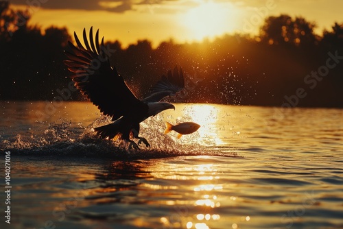 A large bird soaring above the surface of a lake or ocean, great for travel, nature or environmental projects
