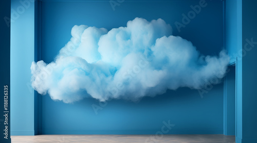 A large blue cloud is hanging from the ceiling