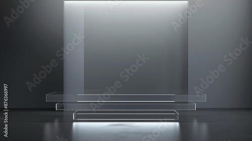 A large, clear glass wall with a black background. Product presentation background