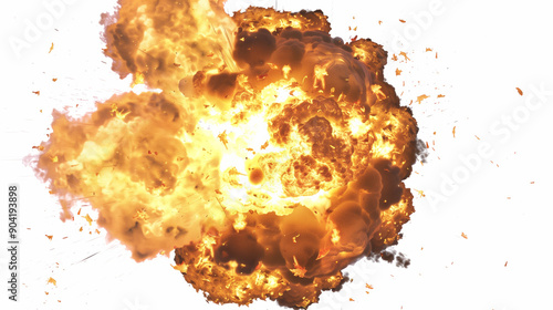A large explosion is depicted in the image, with a lot of debris and smoke. The explosion is so powerful that it has created a huge cloud of dust and debris, which is scattered all over the scene