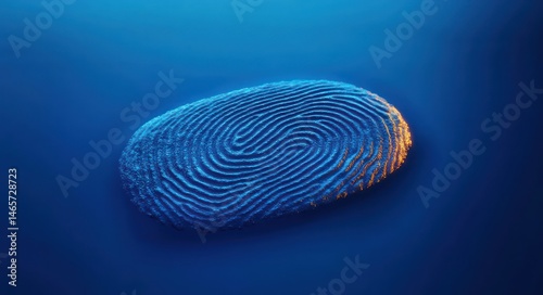 A large fingerprint pattern formed by textured ripples on a smooth blue surface with warm light highlighting part of the pattern