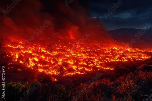 A large fire burning in the middle of a forest, potential use for emergency services or environmental awareness campaigns