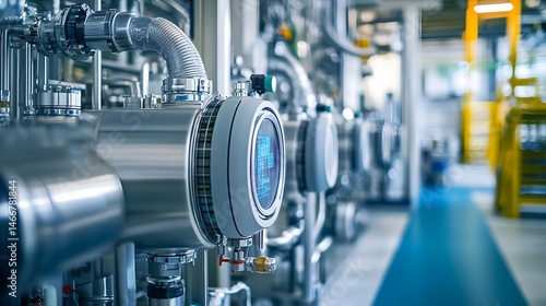 A large industrial plant with a tall smokestack. The sky is orange and pink, creating a warm and peaceful atmosphere
