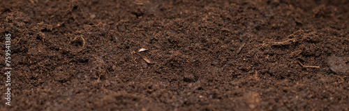 A large, long background of fertile soil and nothing extra. Excellent black soil background suitable for advertising and banners. soil textured background.