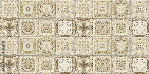 A large panel made of mosaic square tiles with a texture of decorative plaster and stucco molding for interior home decoration. Seamless pattern. Wall tile design.