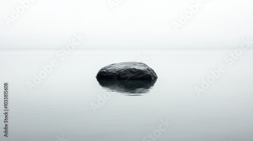A large rock sits in the middle of a calm body of water