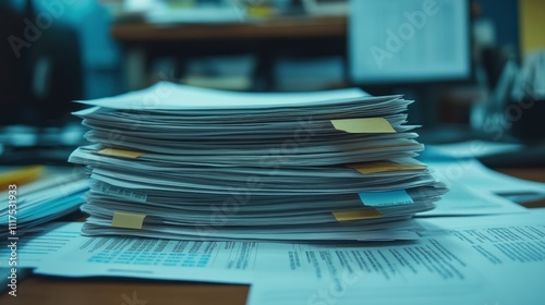 A Large Stack Of Papers Sits On A Desk