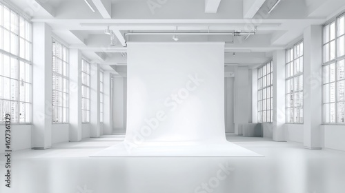 A large white room with a white wall and white floor. The room is empty and has a clean, minimalist feel
