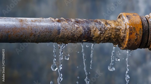 A leaking, rusty water pipe in need of urgent attention, with water pouring out, emphasizing the requirement for professional plumbing services.