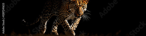 A lean leopard cautiously prowling through the shadows