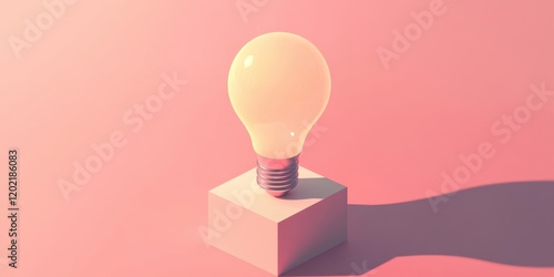 A light bulb stands on a minimalist pedestal, casting a gentle glow against a soft pink background that evokes a calm and creative mood