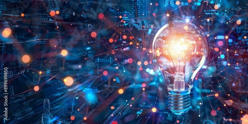 A light bulb surrounded by AI-related symbols, symbolizing the sparks of creativity and innovation in AI research
