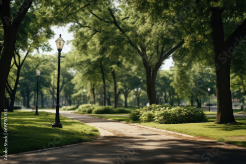 A light wind sweeping through a city park, carrying the blend of urban greenery and distant traffic. Concept of metropolitan freshness. Generative Ai.