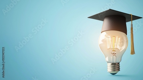 A lightbulb wearing a graduation cap symbolizes creativity, knowledge, and the fusion of education and innovative thinking.