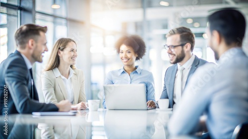 A lively background featuring a team in a dynamic discussion, showcasing effective communication and idea exchange in a modern office environment.