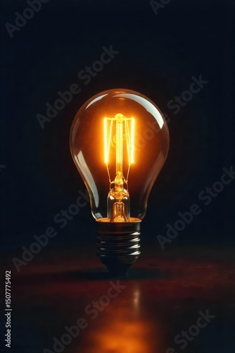 A lone lightbulb glows brightly against a dark background, symbolizing invention and illumination Perfect for concepts of discovery, innovation, and new ideas , lightbulb, filament