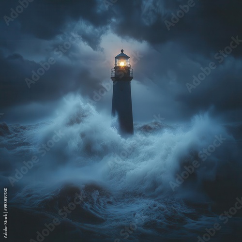 A lone lighthouse standing tall in the storm, symbolizing resilience amidst grief, [hope], [grief and endurance].
