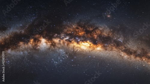 A long exposure of the night sky, showcasing a star-filled galaxy with swirling patterns of distant stars and nebulae.