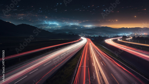 A Long Exposure Photo of a Highway at Night