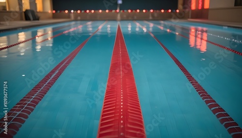 a long pool with a colorful line of water