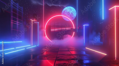 A loop of continuous feedback collection and implementation steps neon retro scifi cinematic 80s