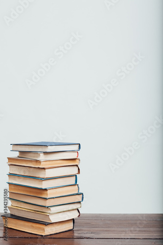 a lot of stacks of educational books for college on a white background