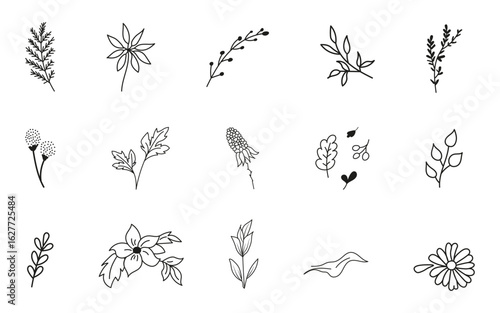 A lovely collection of handdrawn flowers and leaves set against a soft beige background, creating a delightful artistic composition