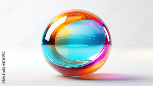 A luminous chromatic color ball, isolated against a white backdrop, shines brightly.