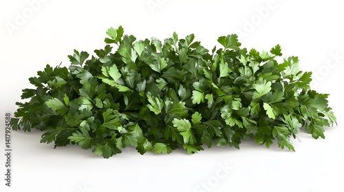 A lush bunch of fresh parsley leaves isolated on a white background. Perfect for culinary or health-related projects.