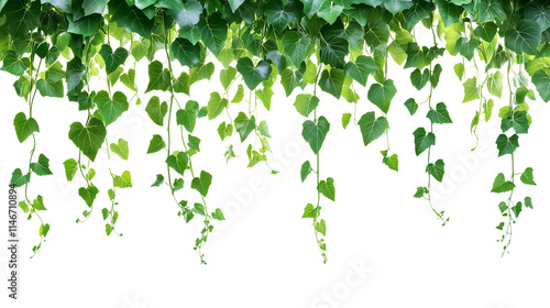 A lush green vertical garden wall, showcasing various types of plants isolated on transparent background