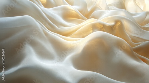 A luxurious silk fabric with rich folds and soft, glowing light in shades of gold and cream