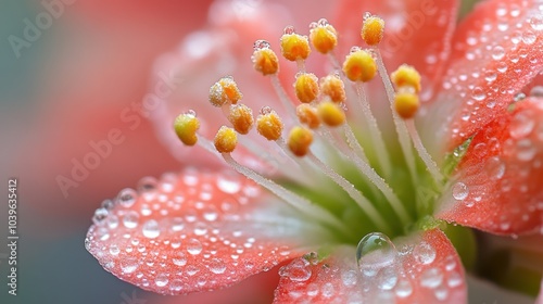 A macro of a blooming flower, focusing on the delicate pollen grains