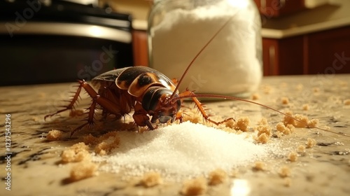 A Macro Shot of Cockroach Feasting on Sugar