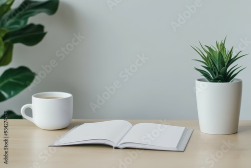 A magazine mock-up displayed with open pages on a sleek