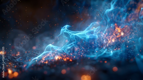 A magical blue flame flickering with soft edges, glowing embers surrounding it, hyper-detailed, isolated with no background.