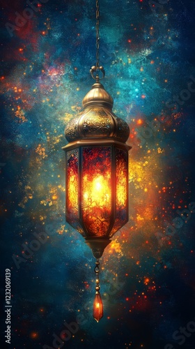 A Magical, Ornate Lantern Glows Warmly Against A Dark, Starry Backdrop. Its Intricate Details And Warm Light Create A Mystical And Enchanting Scene.