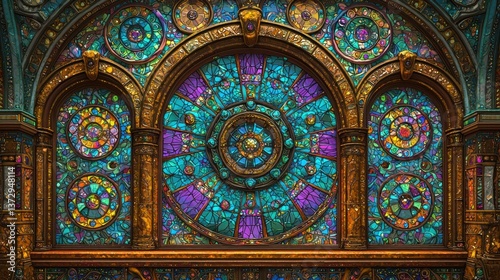 A Majestic Stained Glass Window: A Kaleidoscope of Colors and Intricate Design