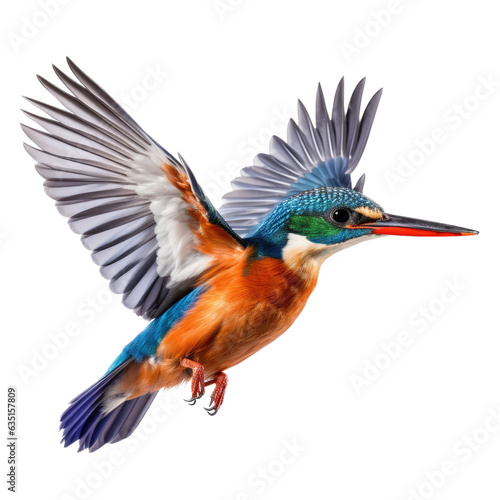 a Malachite Kingfisher (Corythornis cristatus) in flight, side view in a Nature-themed, photorealistic illustration in a PNG, cutout, and isolated. generative ai