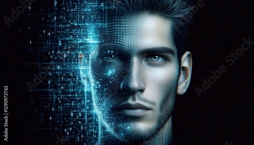 A Male Face Emerging from a Digital Matrix Cybersecurity and the Future of Artificial Intelligence and Technology