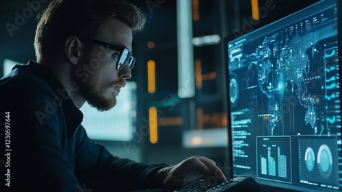 A man carefully reviews financial reports. He's using a calculator and laptop in his office.