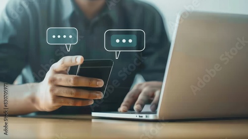 A man holding phone with virtual speech bubbles