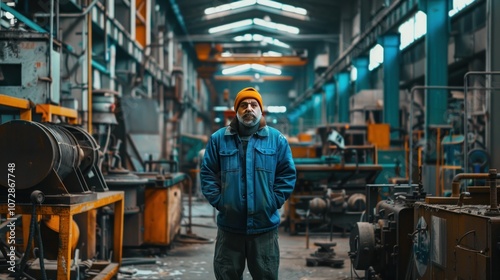 A man in an industrial setting with a serious expression, looking directly at the camera.